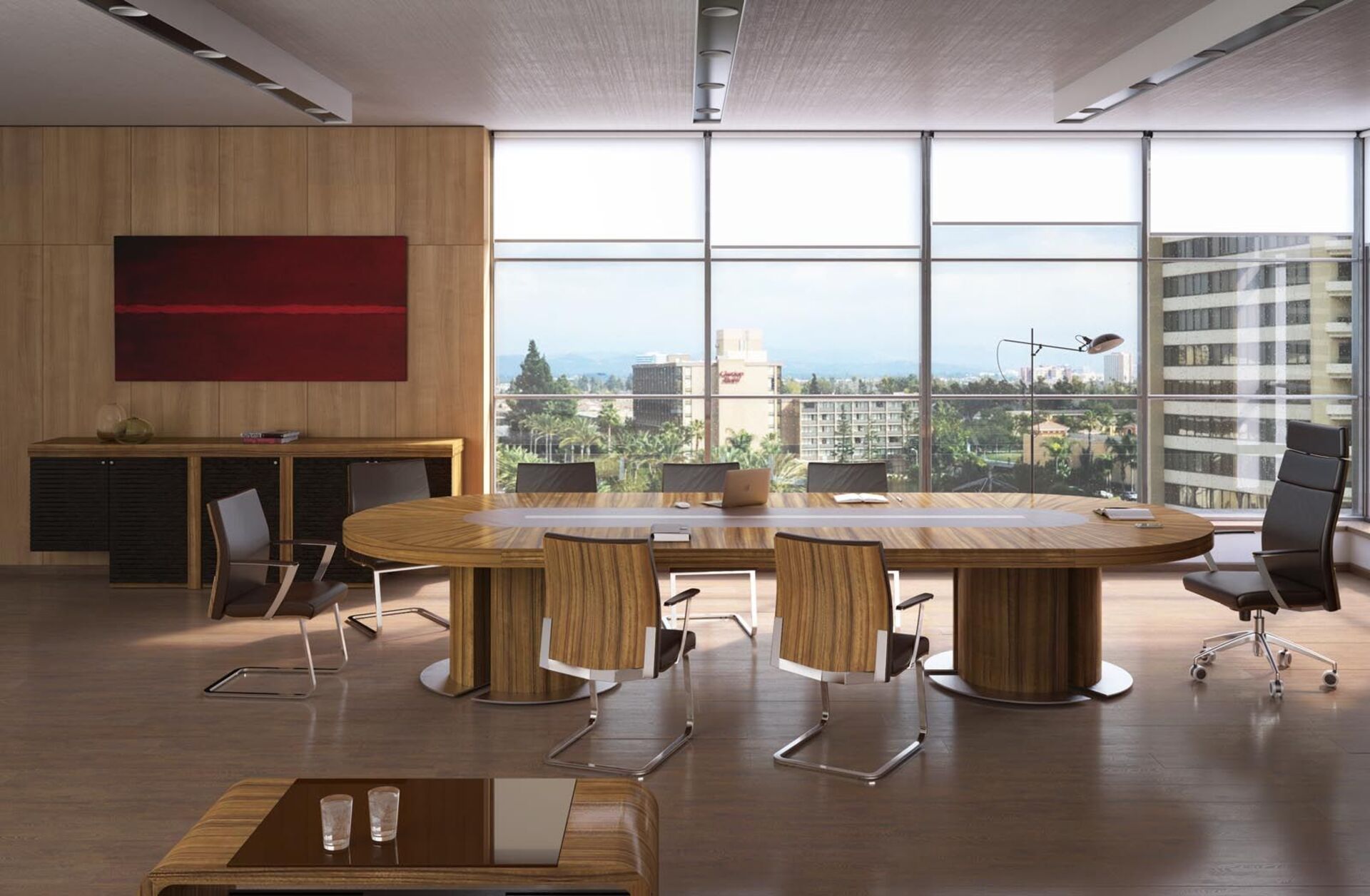 2. необычная форма мебели за счет закругленных углов письменных столов, брифингов, журнальных столиков;