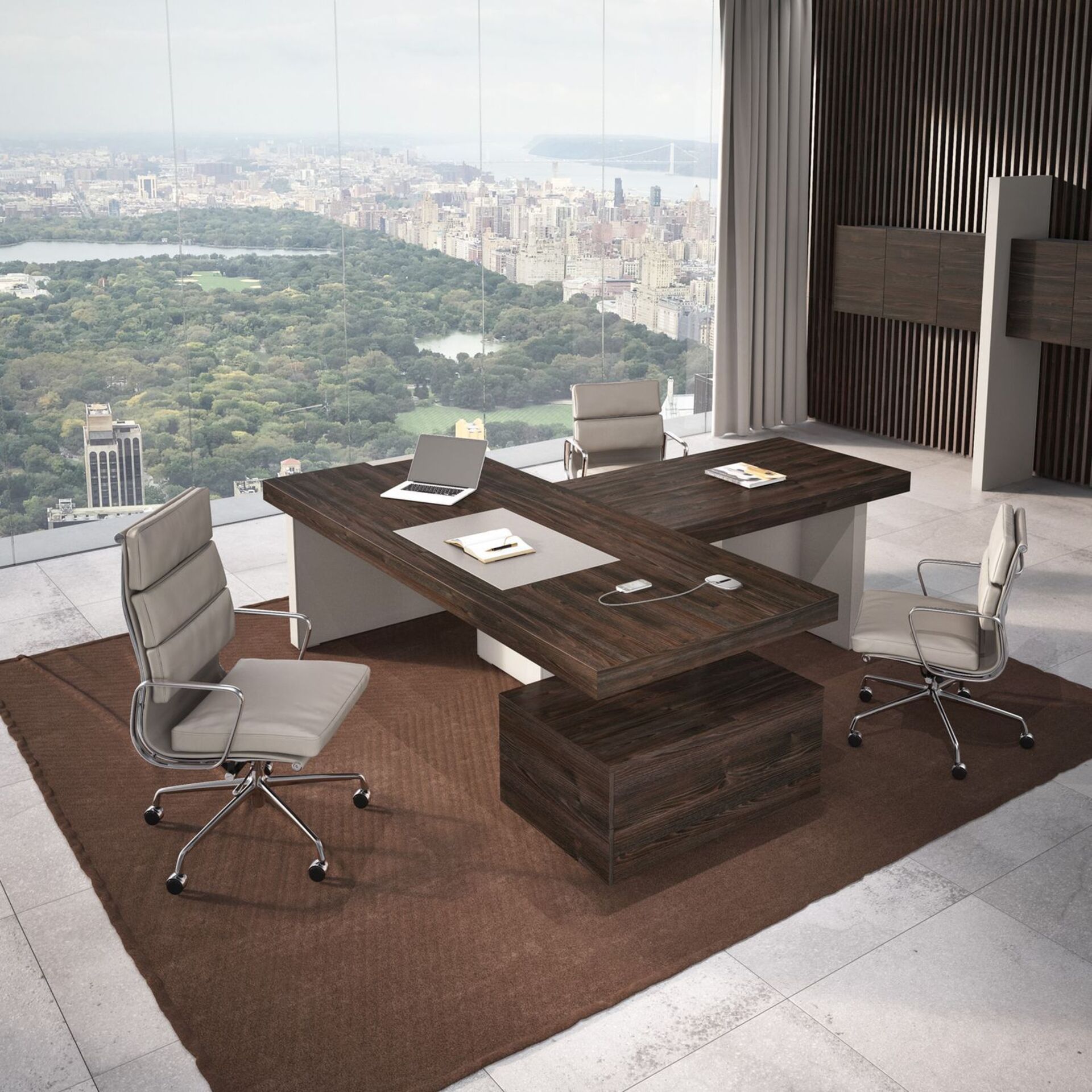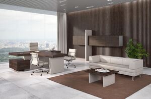Кабинет руководителя Era – это офисная мебель для современного топ-менеджера, который ценит роскошь, комфорт и функциональность в рабочем пространстве. Меблировка принадлежит к премиальной категории, воплощает в себе прогрессивные дизайнерские идеи. Покупка такой обстановки гарантированно делает интерьер узнаваемым и впечатляющим, подчеркивает высокий статус владельца фирмы. Ее точно не назовешь изящной, но брутальные формы, монолитные конструкции и древесные оттенки делают кабинет руководителя не менее роскошным. Преимущества мебели Era: