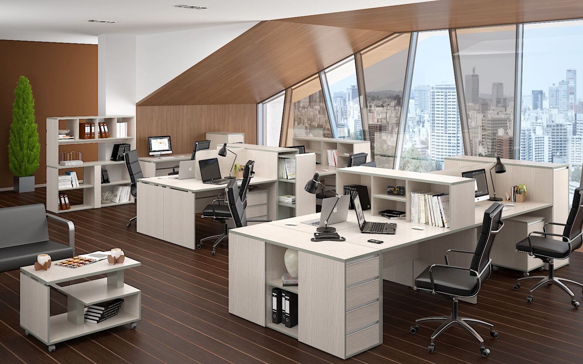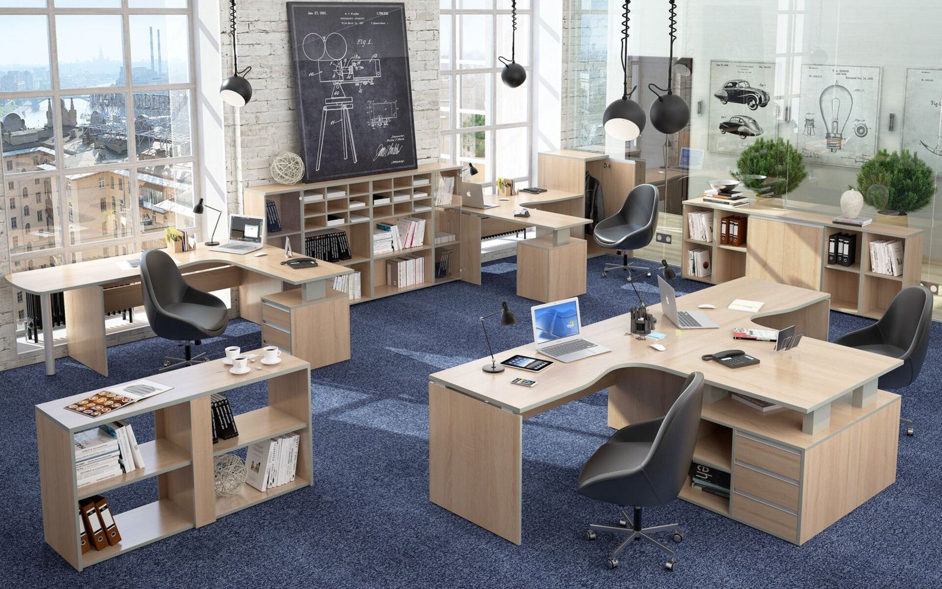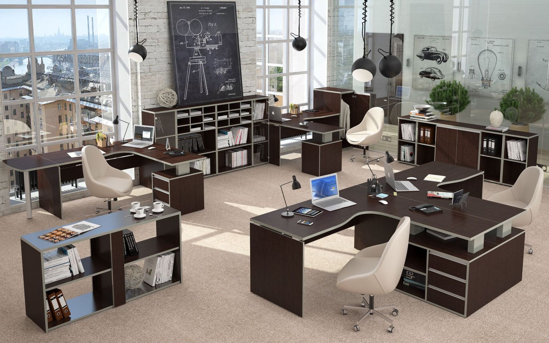 1. наличие модульных систем позволяет соединять и объединять разные элементы, чтобы оптимально использовать офисную площадь;