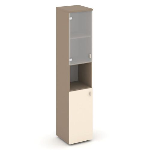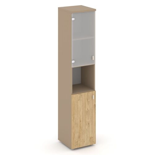 Шкаф высокий узкий левый (1 низкий фасад ЛДСП+1 низкий фасад стекло) ES.SU-1.4 (L)