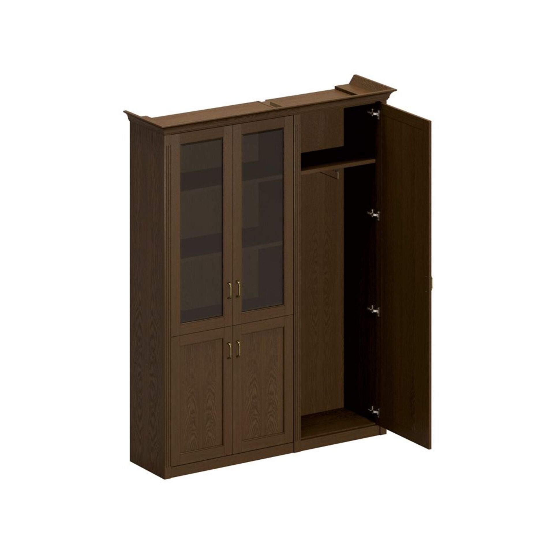 Шкаф высокий комбинированный (для одежды узкий + для документов со стеклянными дверями) ПС 344 ДМ