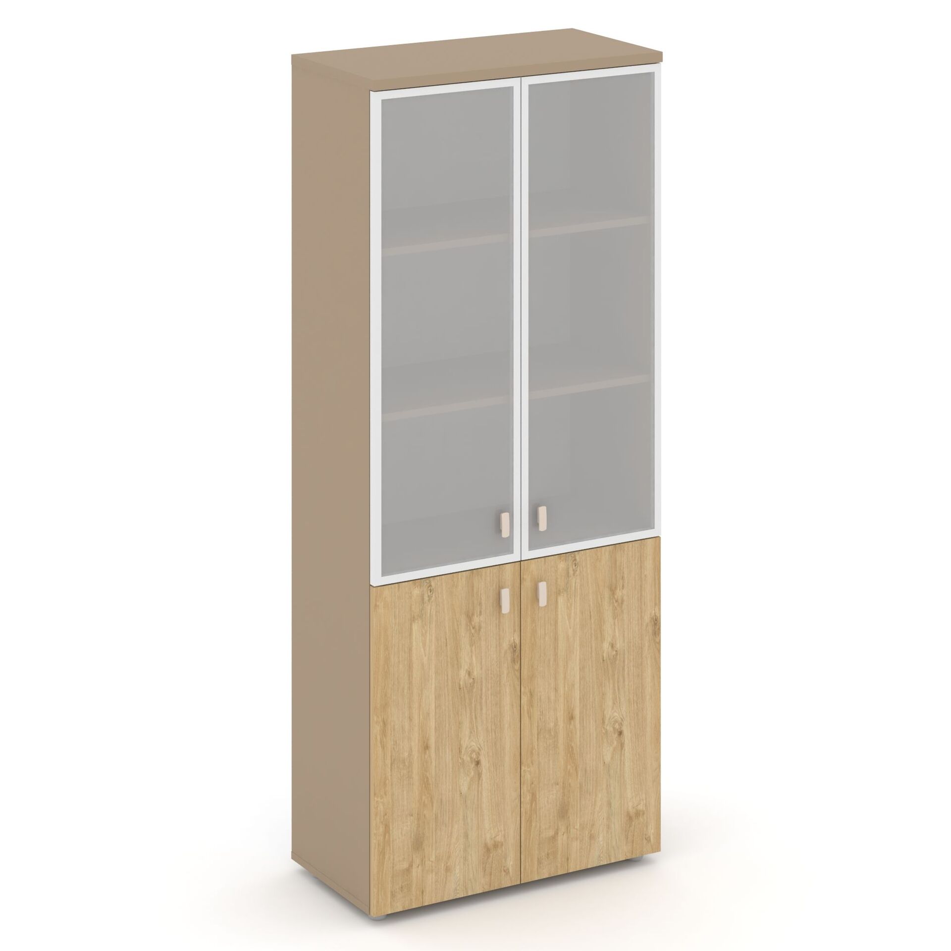 Шкаф высокий широкий (2 низких фасада ЛДСП+2 средних фасада стекло в раме ) ES.ST-1.2R