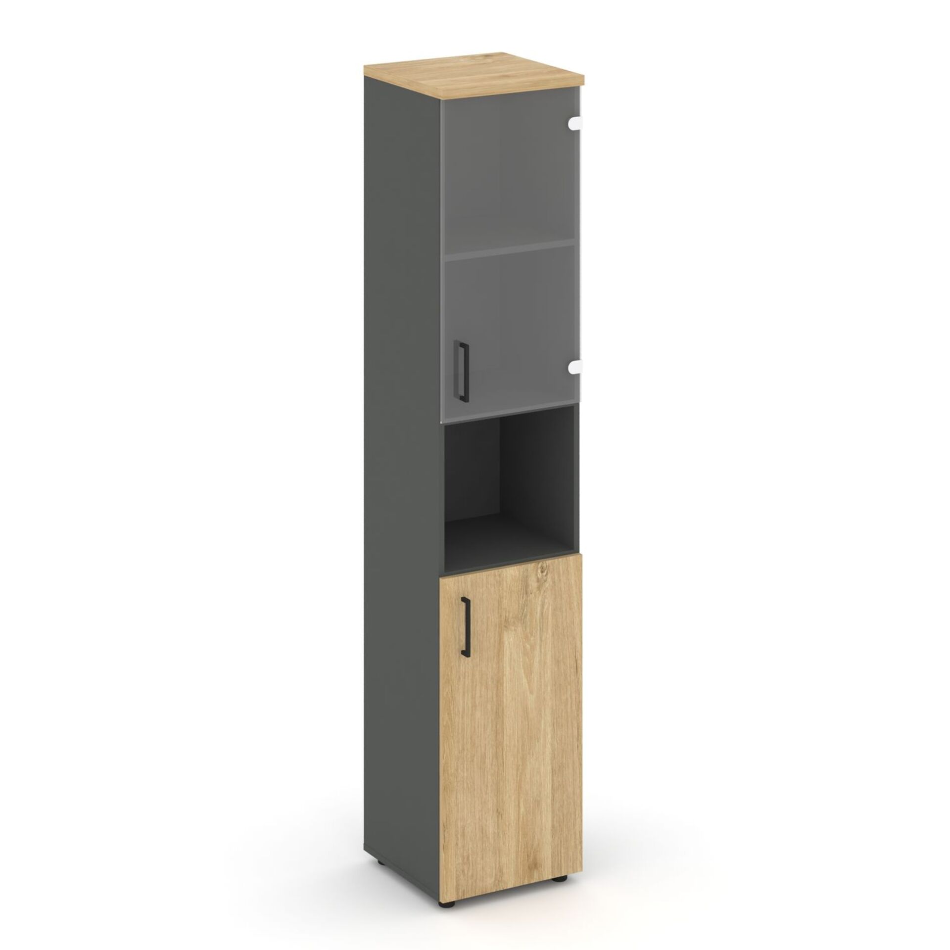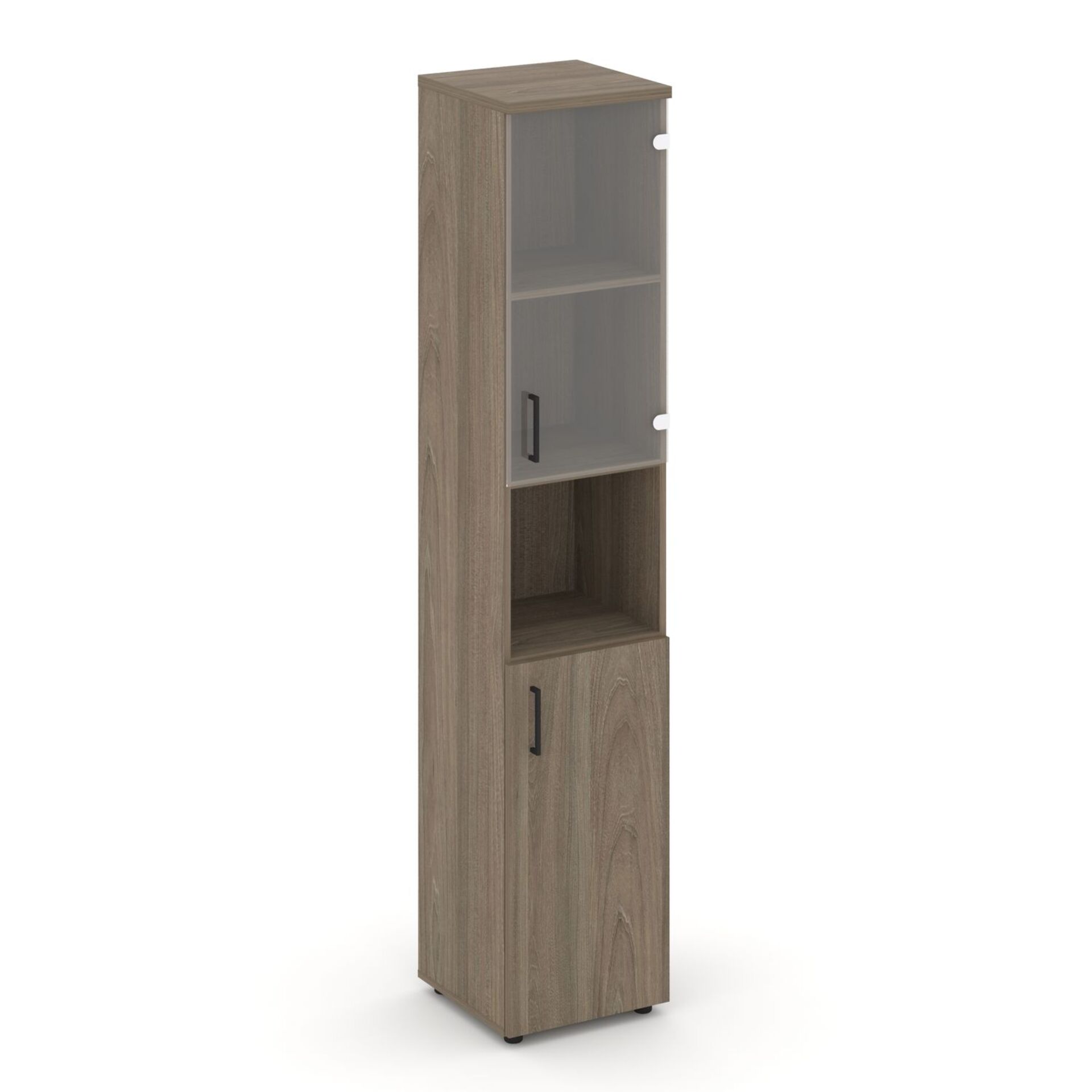 Шкаф высокий узкий правый (1 низкий фасад ЛДСП + 1 низкий фасад стекло прозрачное) SN.STU-105(R)
