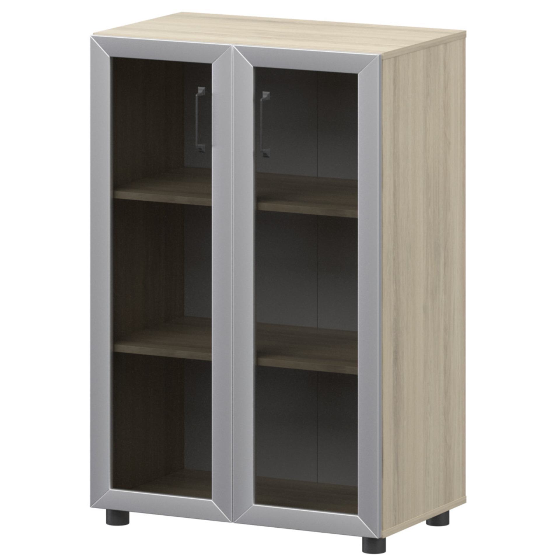 Стеллаж средний закрытый с стеклянными фасадами в алюминиевой раме К-933,К-945,КФ-945