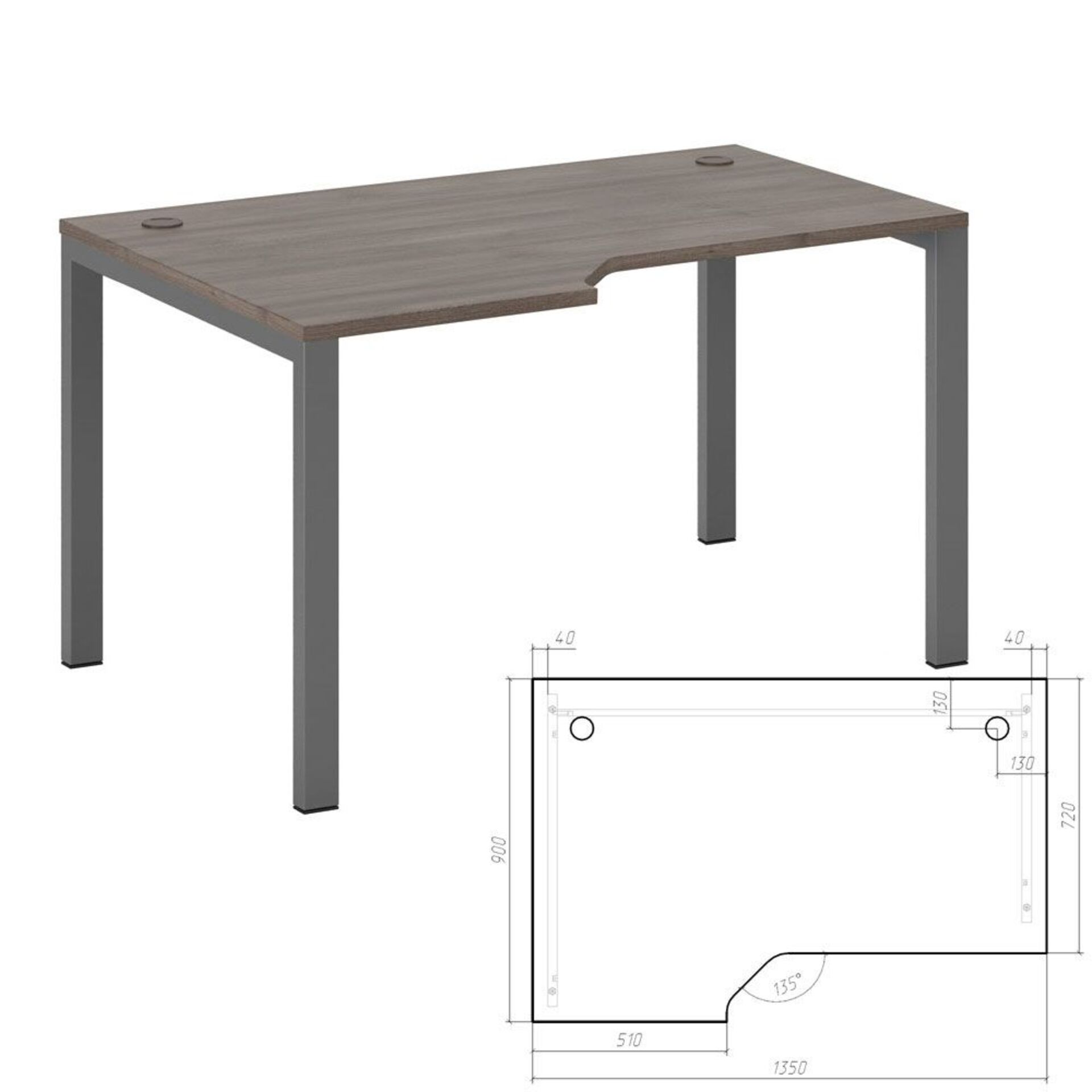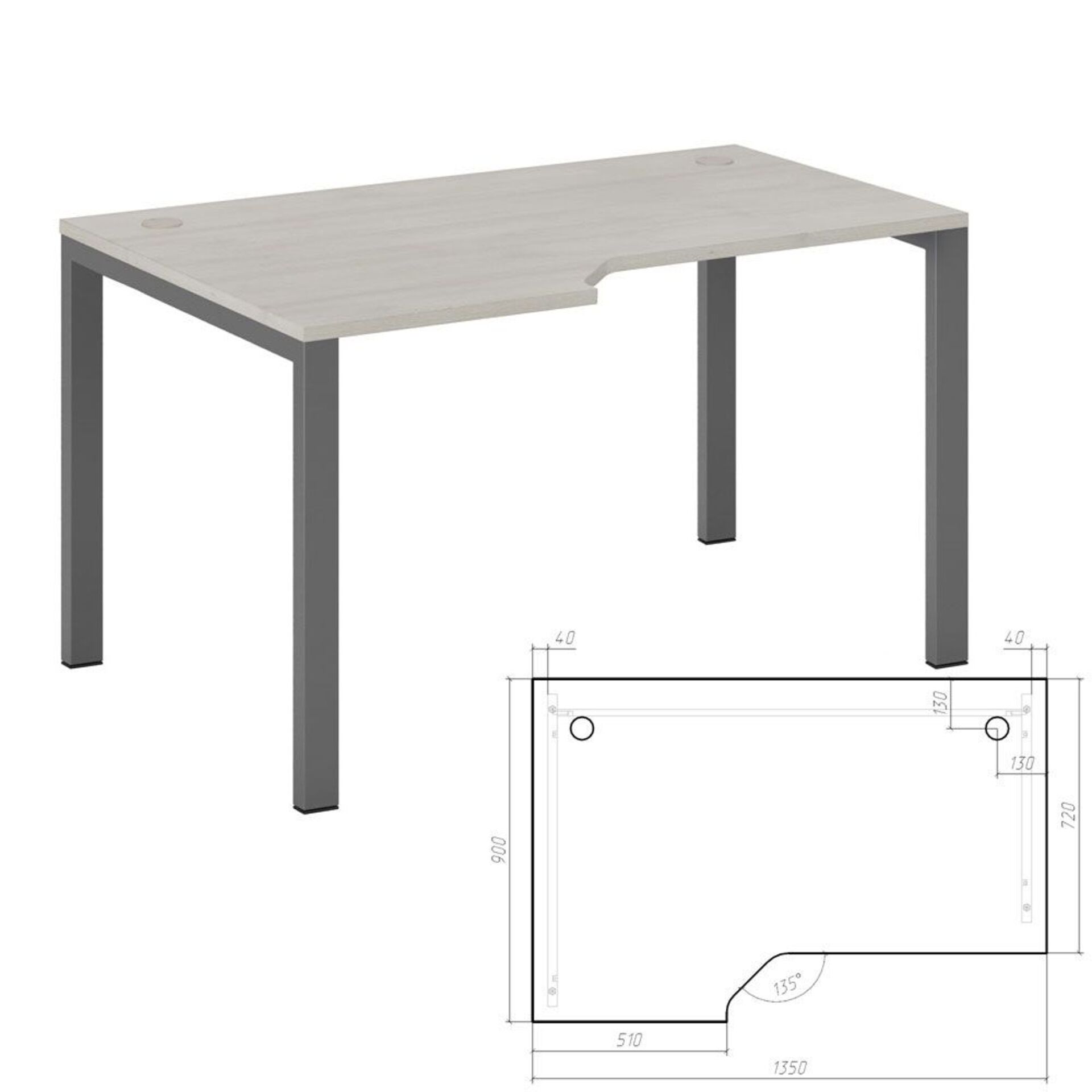 Стол с кабель каналом справа А-003.60.К.ПР
