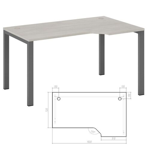 Стол эргономичный правый на металлоопорах NLN363227