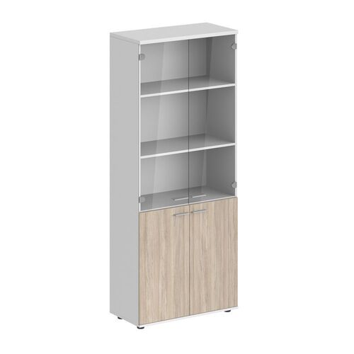 Шкаф высокий, 4-х дв., со стеклом, з.ст ЛДСП SG.811.WH.OL.GL