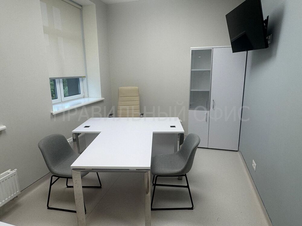 1. Стол руководителя П-образной конфигурации M-O.MP-SRR-4.8 стал центральным элементом кабинета. Его просторная столешница предоставляет достаточно места для ведения документации, работы за компьютером и приема пациентов. Прочная и элегантная конструкция на стальном каркасе сразу задает тон всему интерьеру.