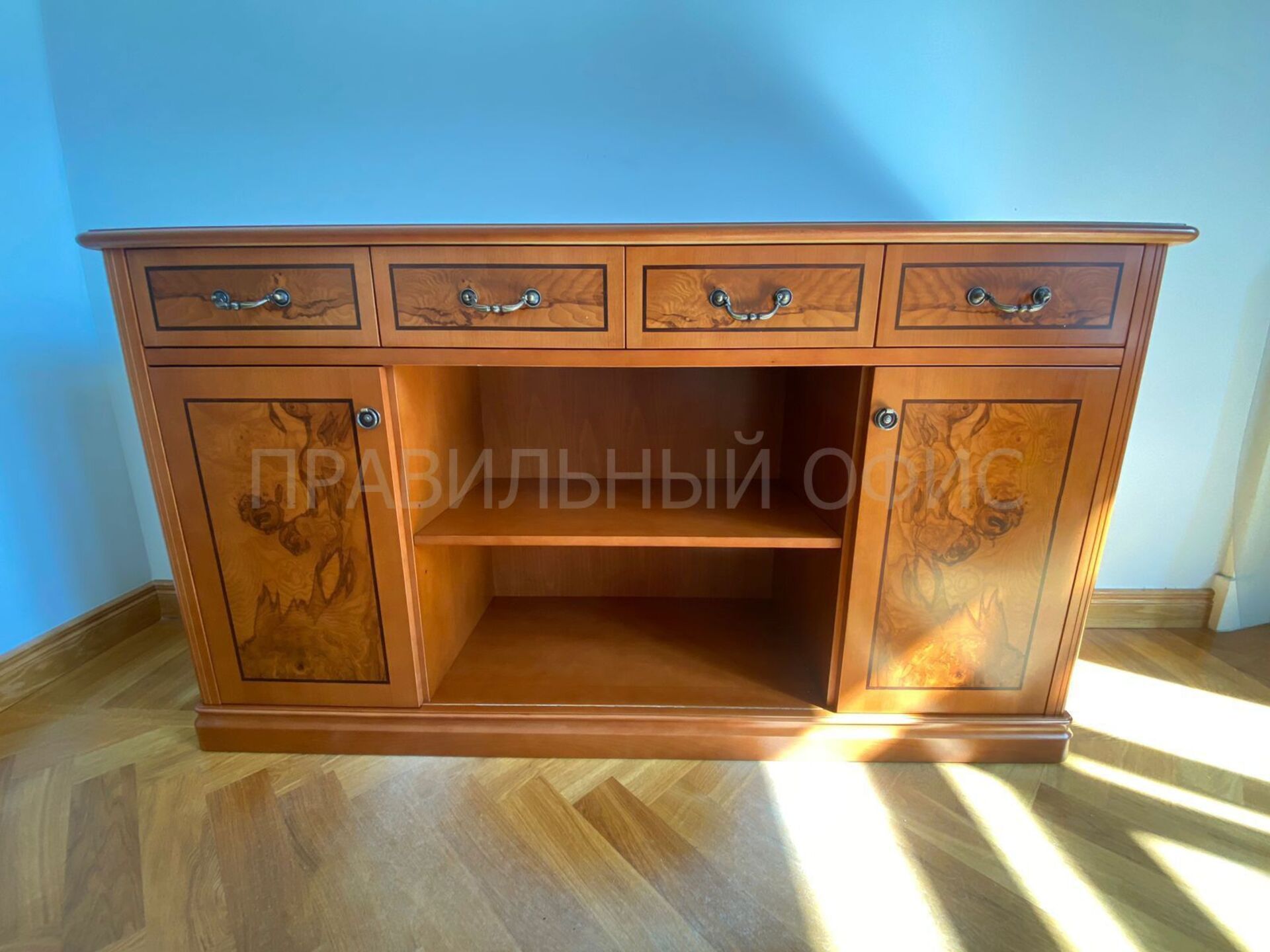 Кабинет руководителя PRIVILEGE — это воплощение утонченной классики и подлинной роскоши. Её дизайн, основанный на безупречных пропорциях и гармонии форм, говорит о статусе своего владельца красноречивее любых слов. В данном проекте уникальный характер кабинету придает использование редкого и благородного материала — натурального шпона корня оливкового дерева насыщенного янтарного оттенка. Неповторимый рисунок древесины, подчеркнутый многослойным лаковым покрытием, делает каждый элемент мебели по-настоящему уникальным арт-объектом.